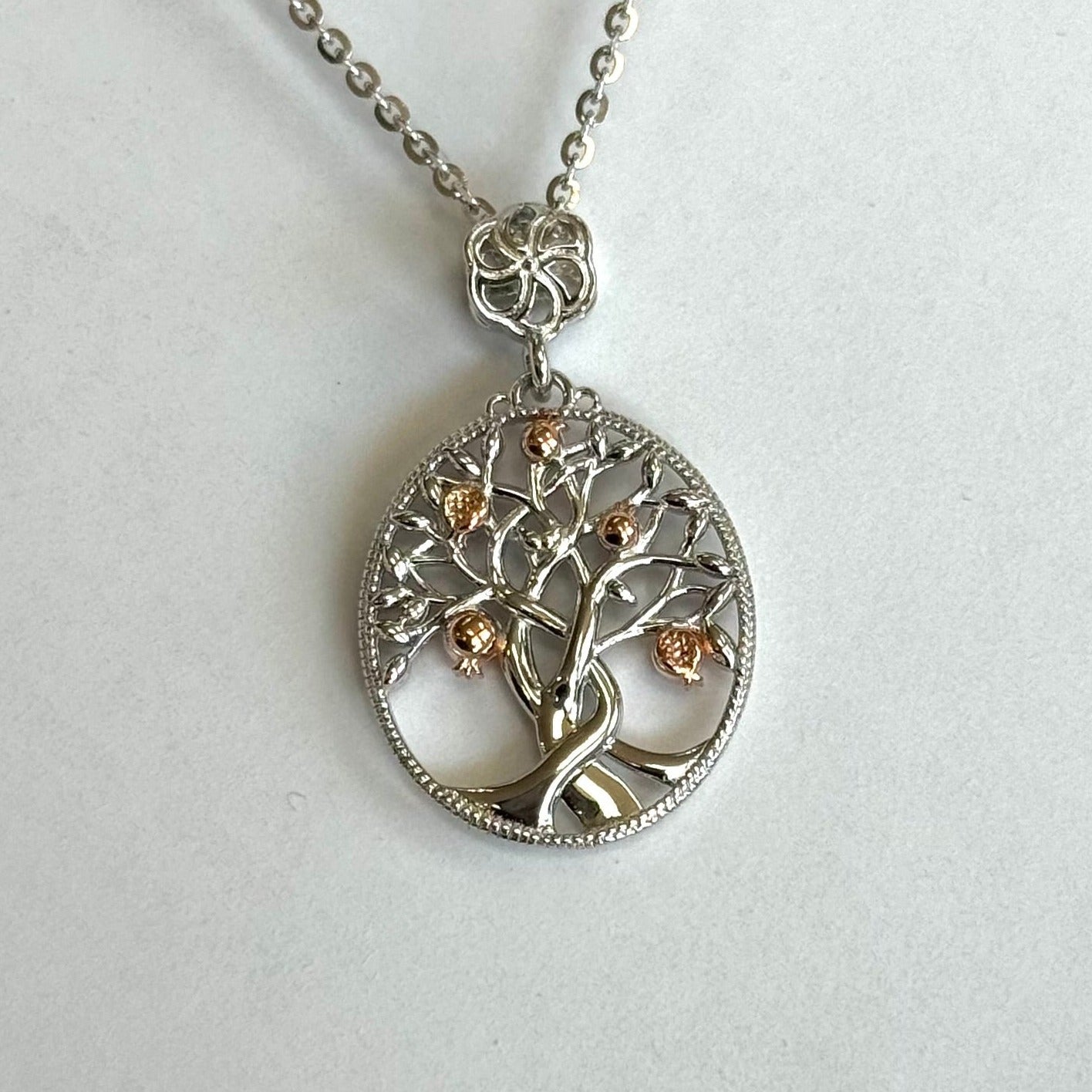 Introducing the exquisite Pomegranate Tree Necklace, a captivating piece of jewelry that celebrates the beauty and symbolism of the pomegranate tree. This necklace is designed to enchant and inspire, making it a perfect addition to any jewelry collection.